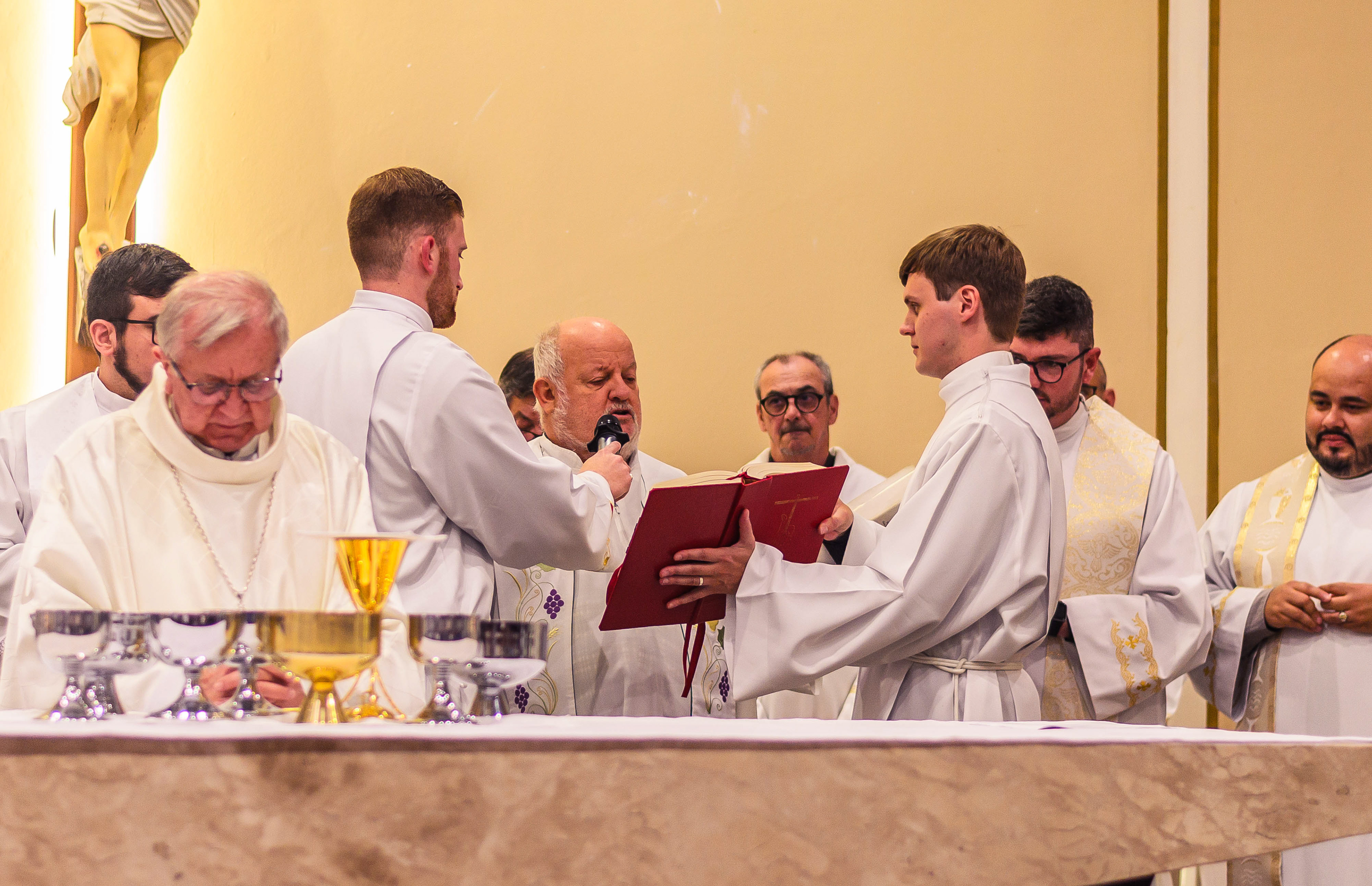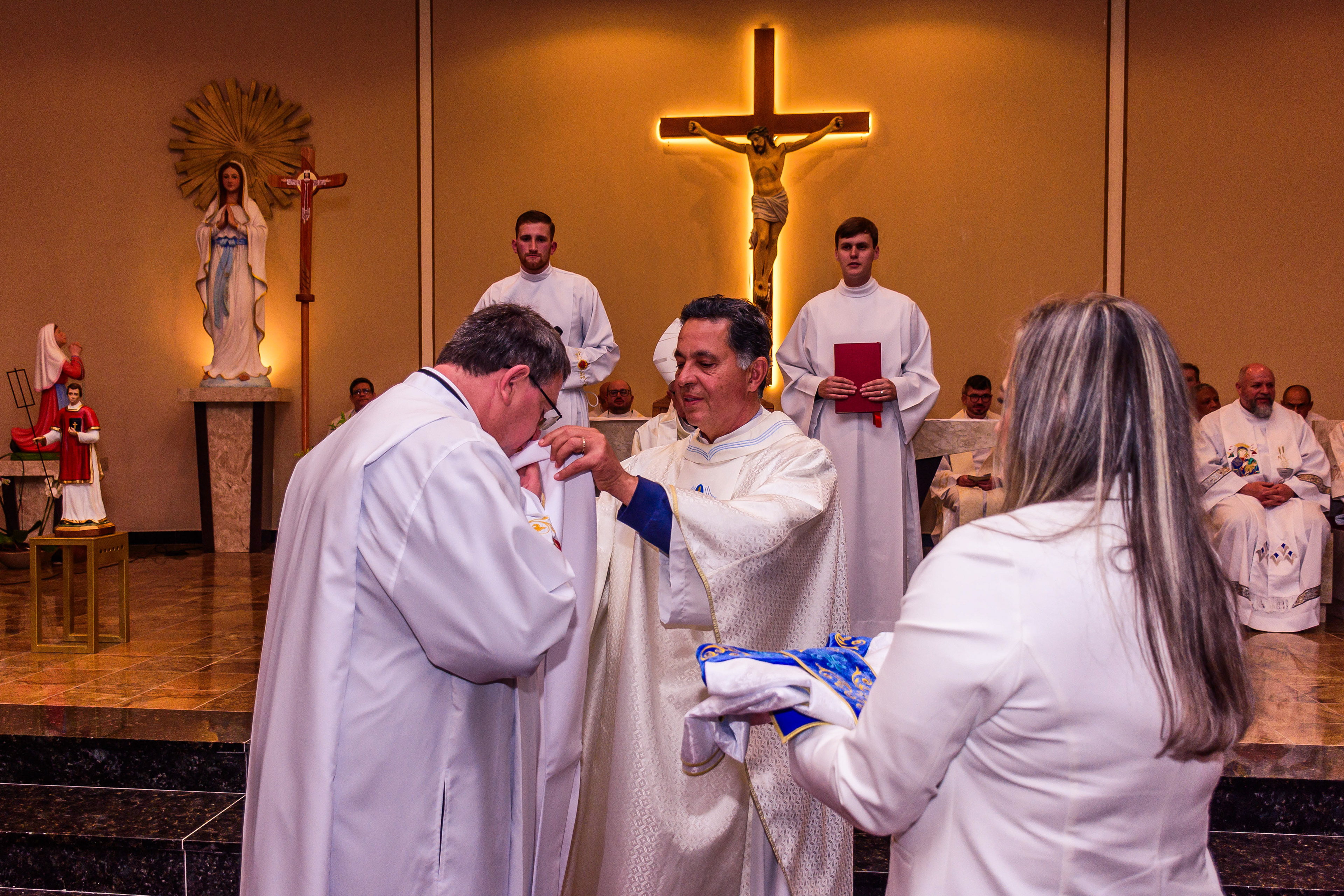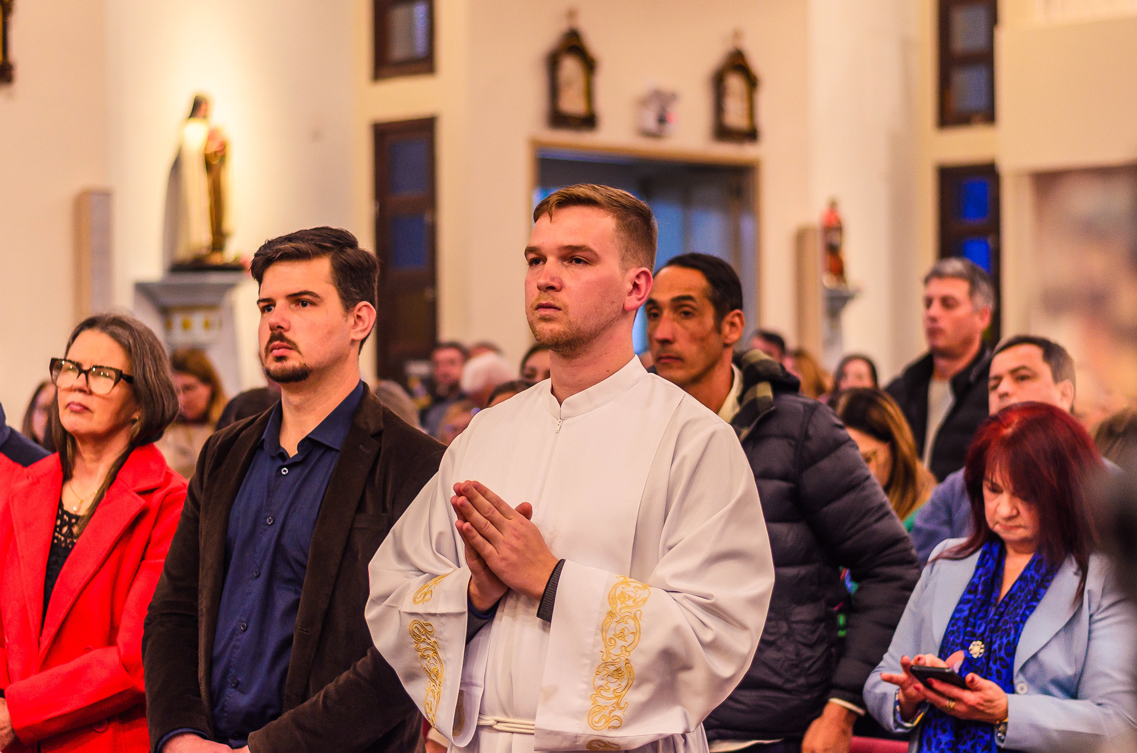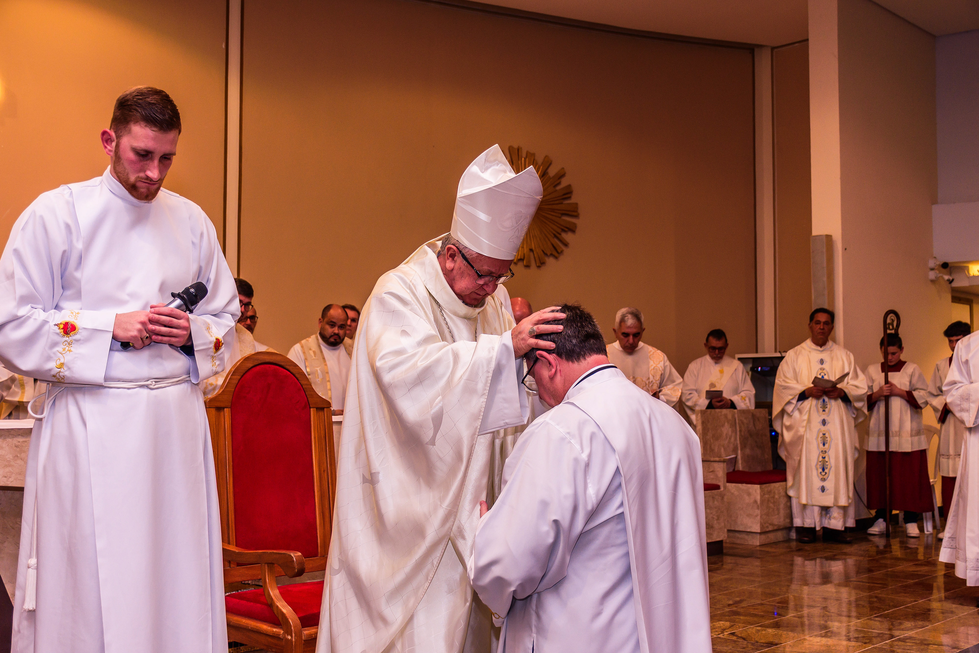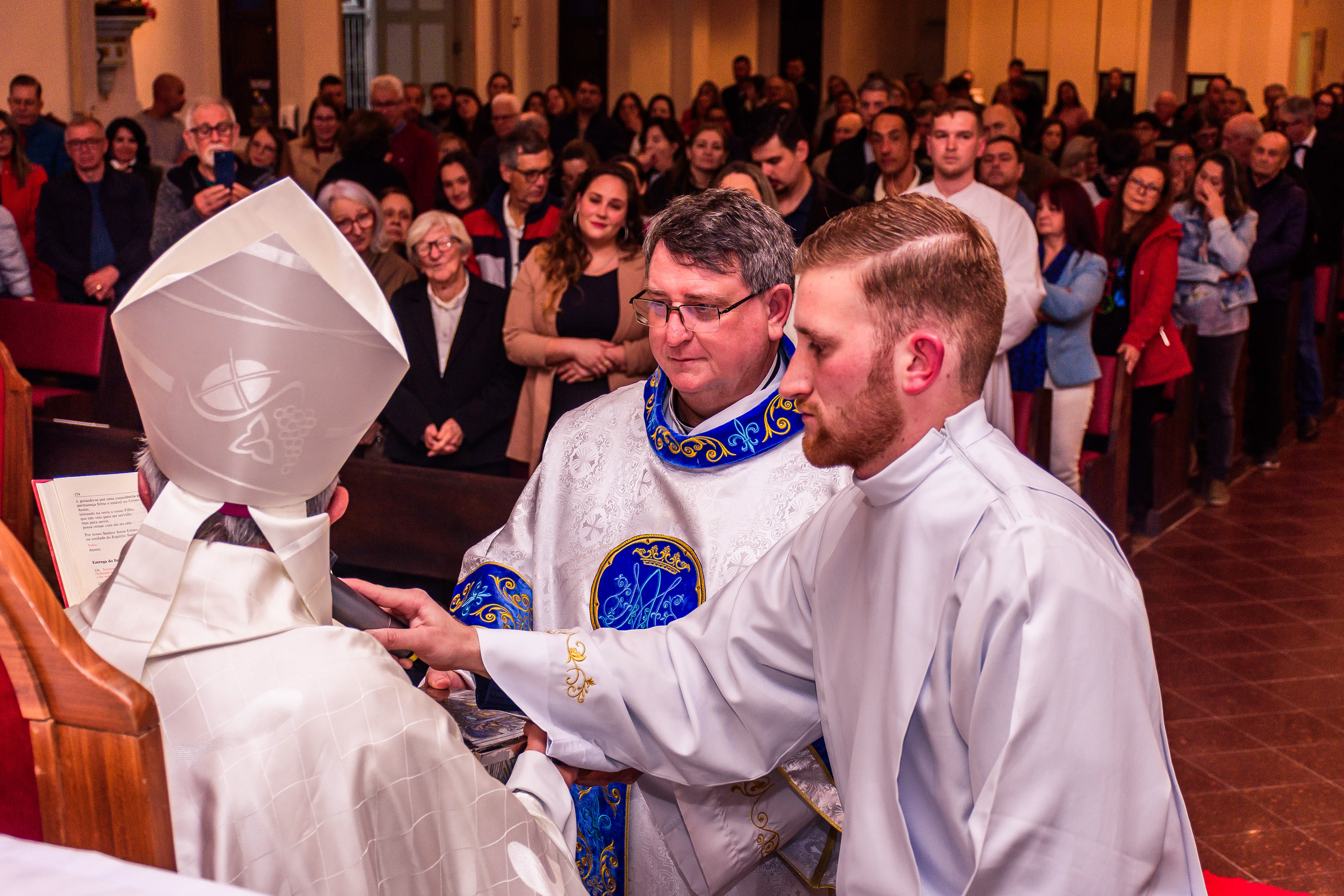 Neste dia santo, marcado pela graça e pelo mistério do chamado, cada instante revela a entrega generosa de um coração disposto a servir. As imagens não registram apenas gestos e olhares, mas o “sim” pronunciado diante de Deus e da Igreja, selado pela fé, pela obediência e pelo amor ao próximo. Que este álbum seja memória viva da Ordenação Diaconal de Rafael Petry, sinal da ação do Espírito Santo, da vocação acolhida com humildade e da missão que, a partir deste dia, se torna serviço e doação para a vida do povo de Deus.