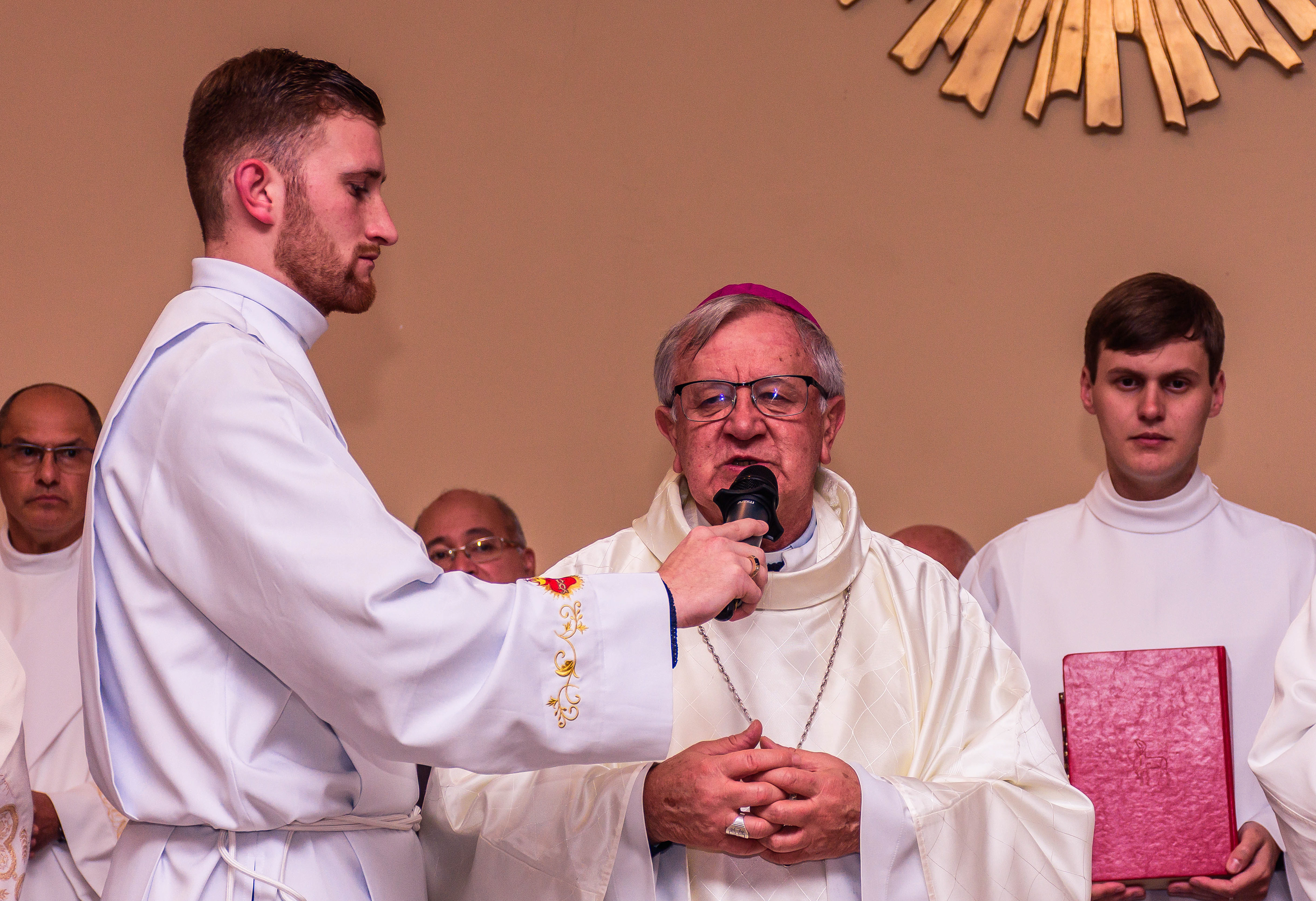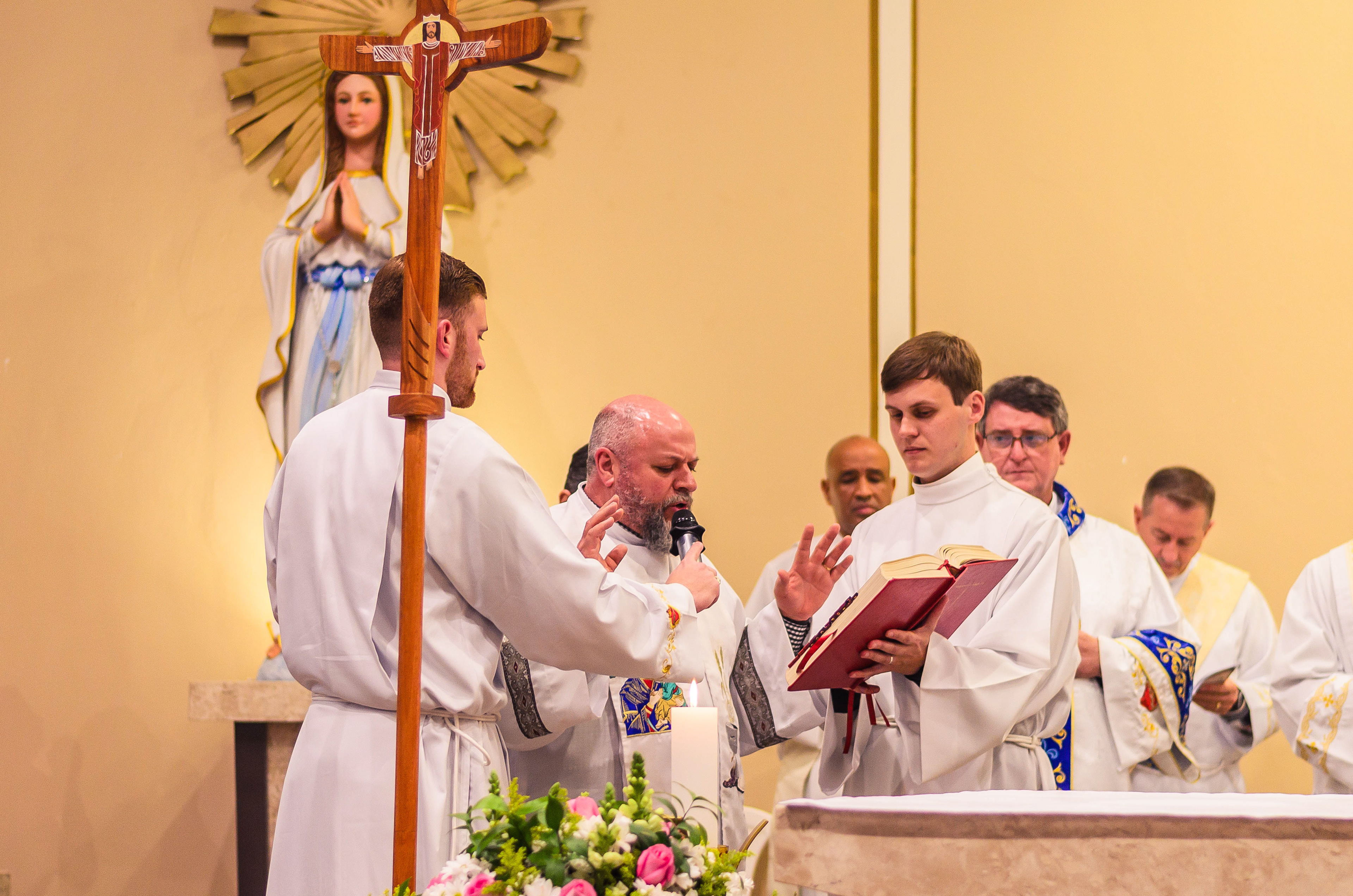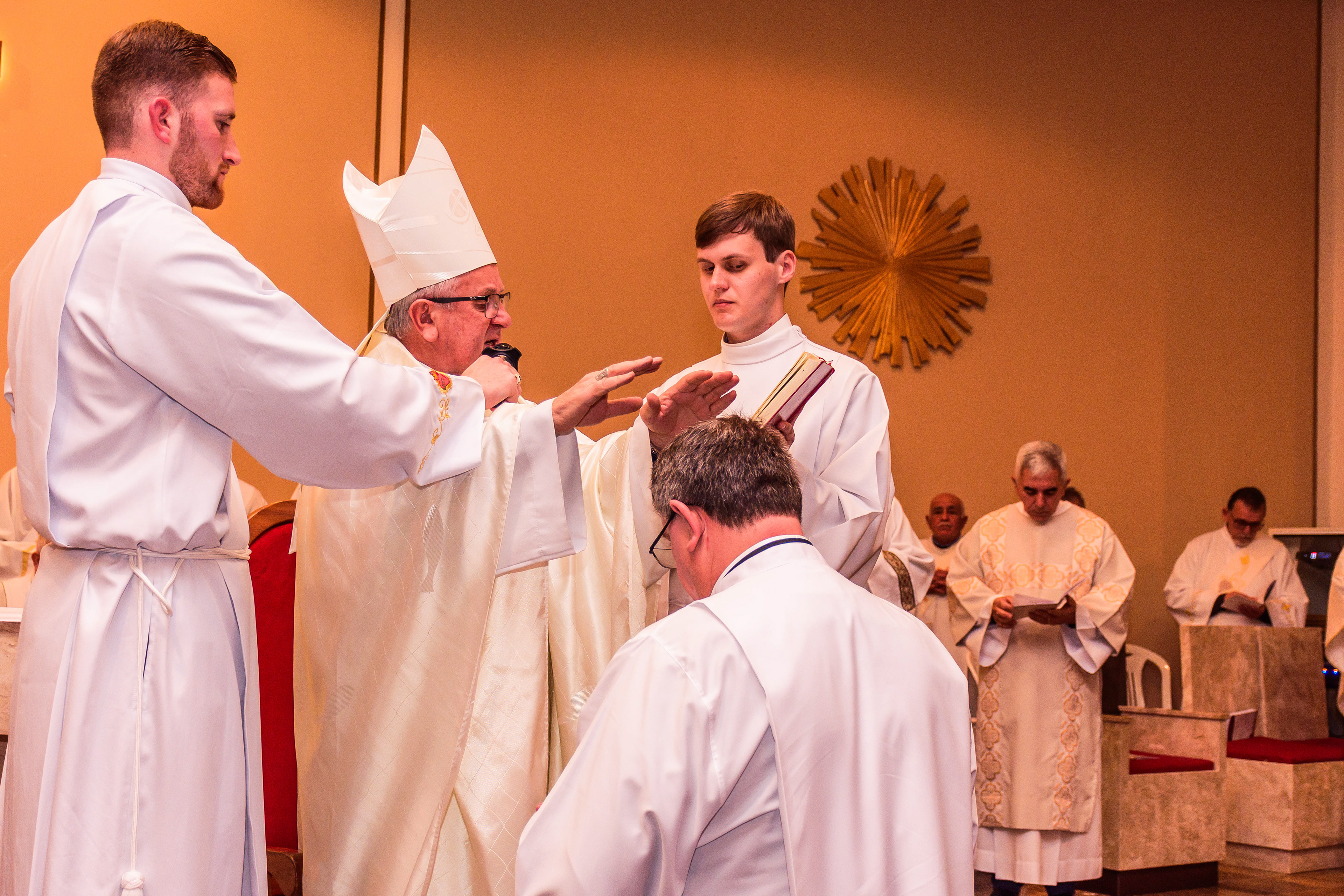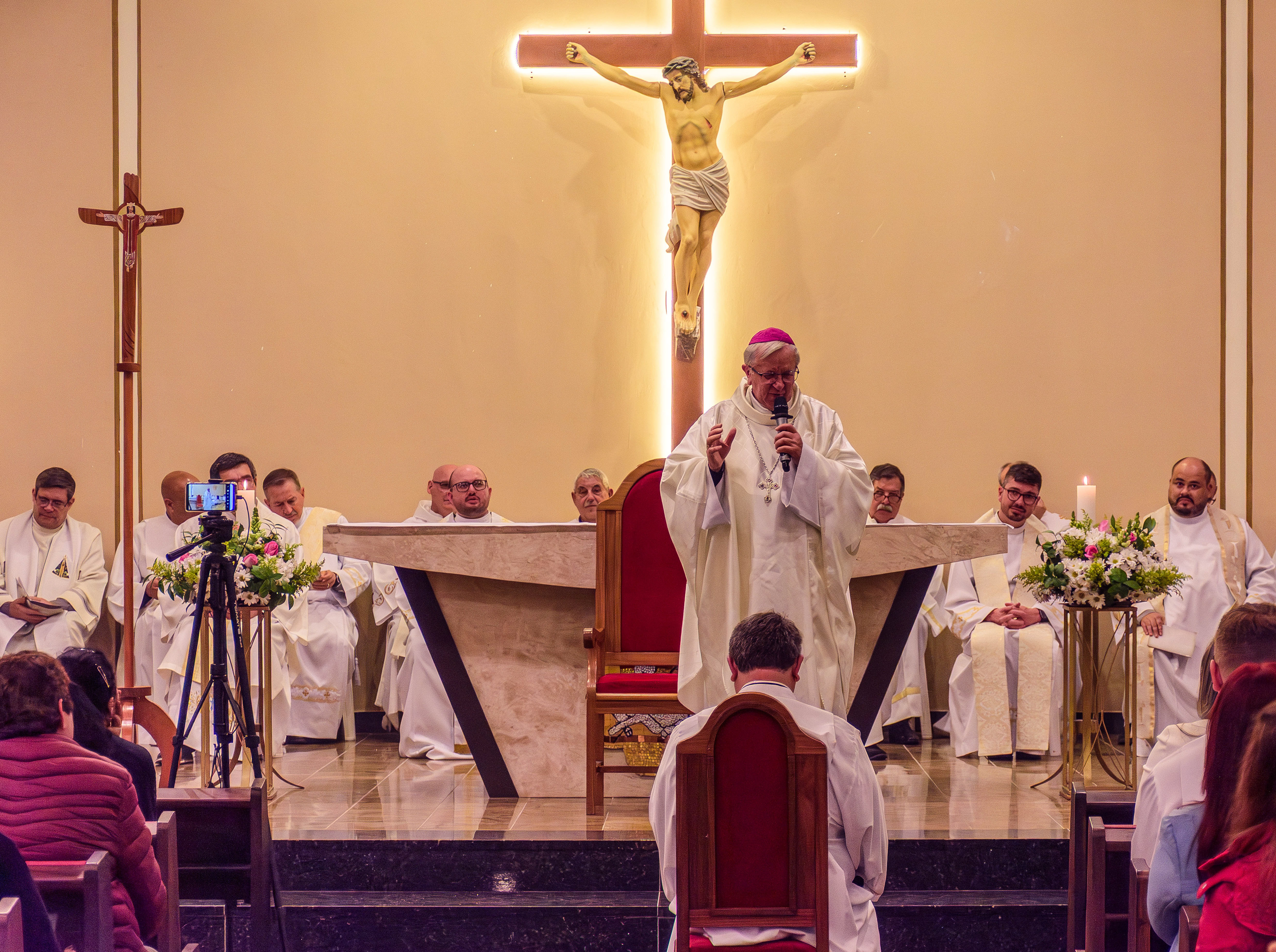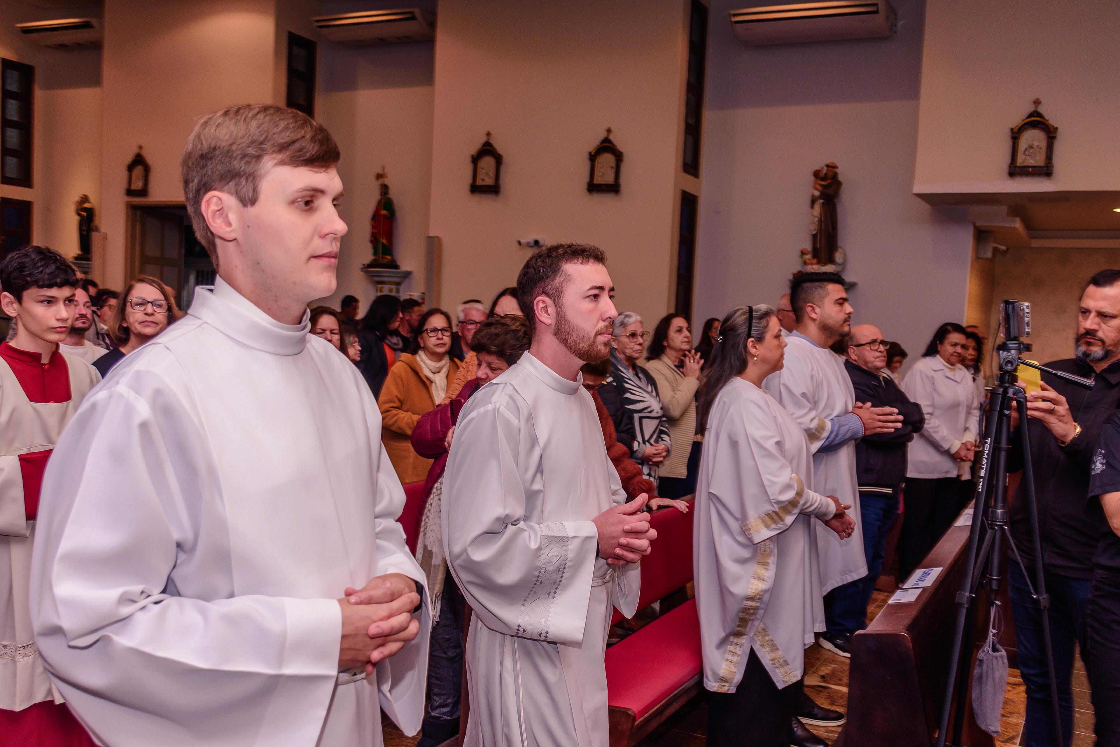Neste dia santo, marcado pela graça e pelo mistério do chamado, cada instante revela a entrega generosa de um coração disposto a servir. As imagens não registram apenas gestos e olhares, mas o “sim” pronunciado diante de Deus e da Igreja, selado pela fé, pela obediência e pelo amor ao próximo. Que este álbum seja memória viva da Ordenação Diaconal de Rafael Petry, sinal da ação do Espírito Santo, da vocação acolhida com humildade e da missão que, a partir deste dia, se torna serviço e doação para a vida do povo de Deus.