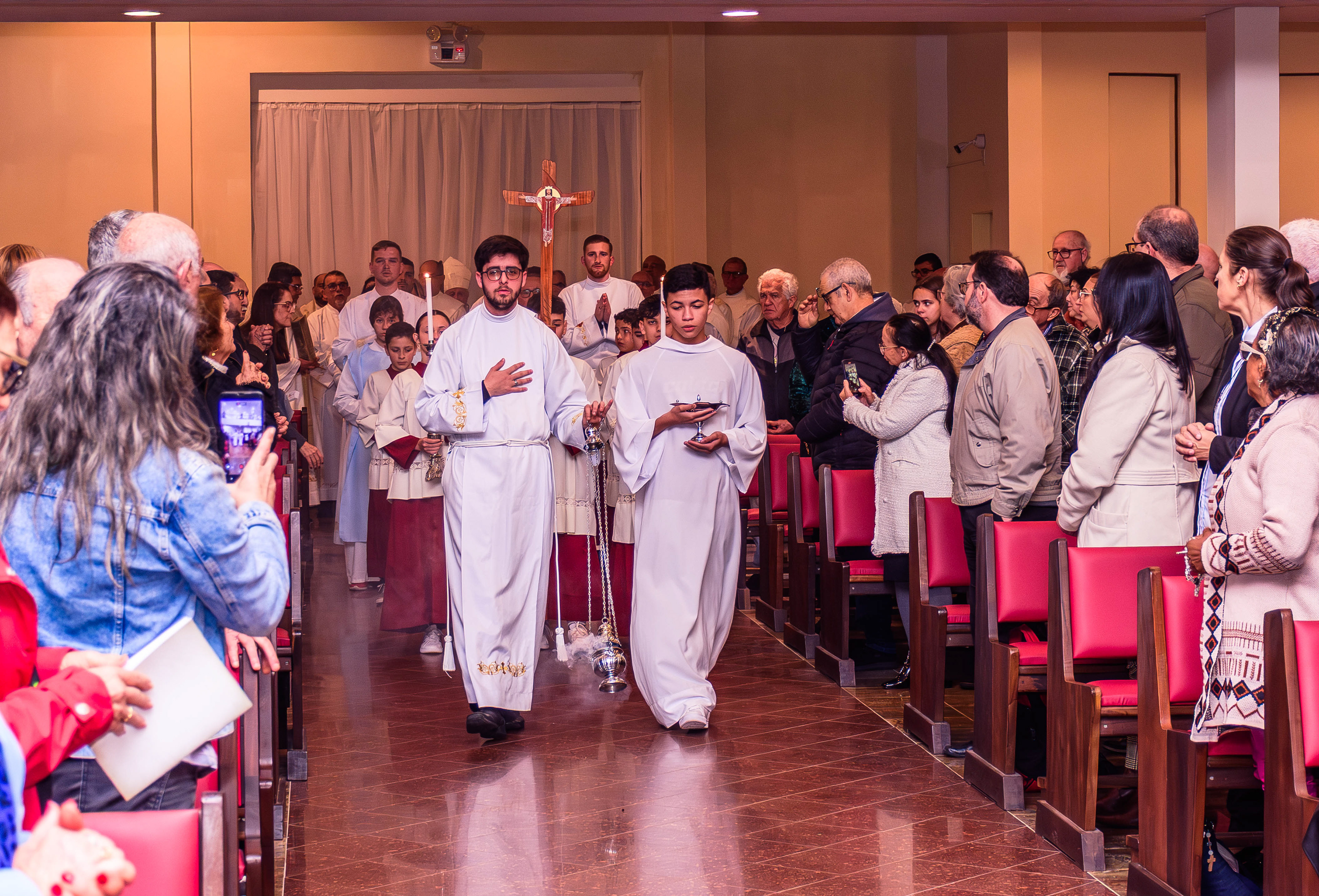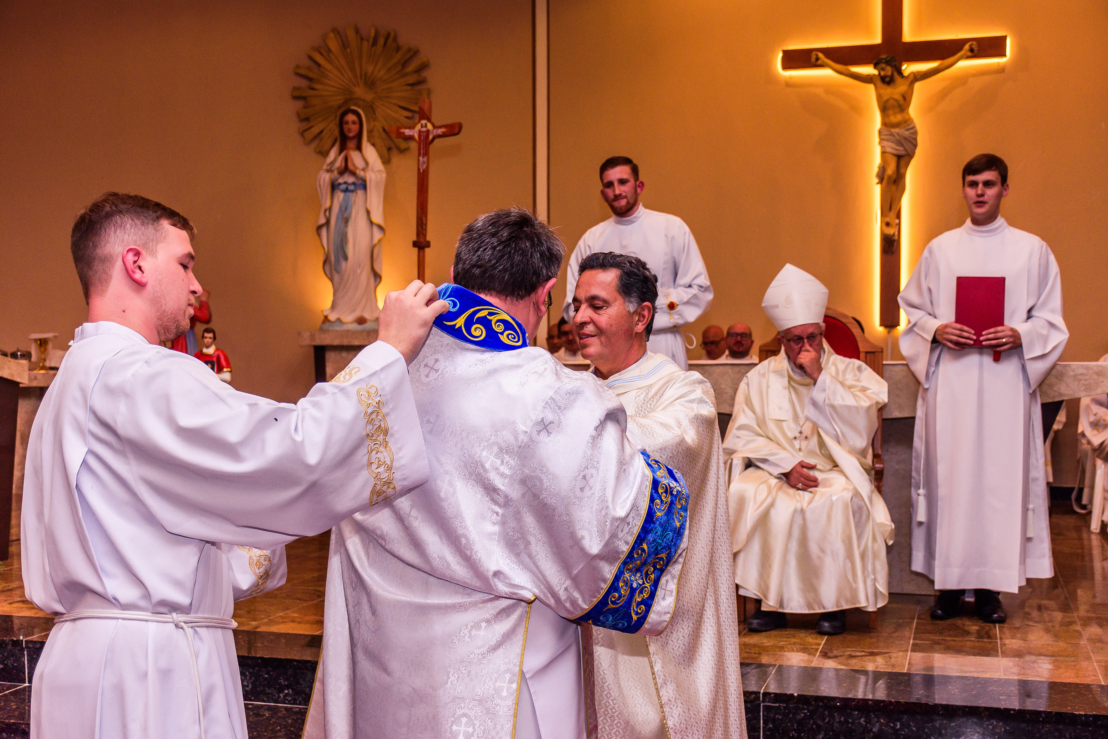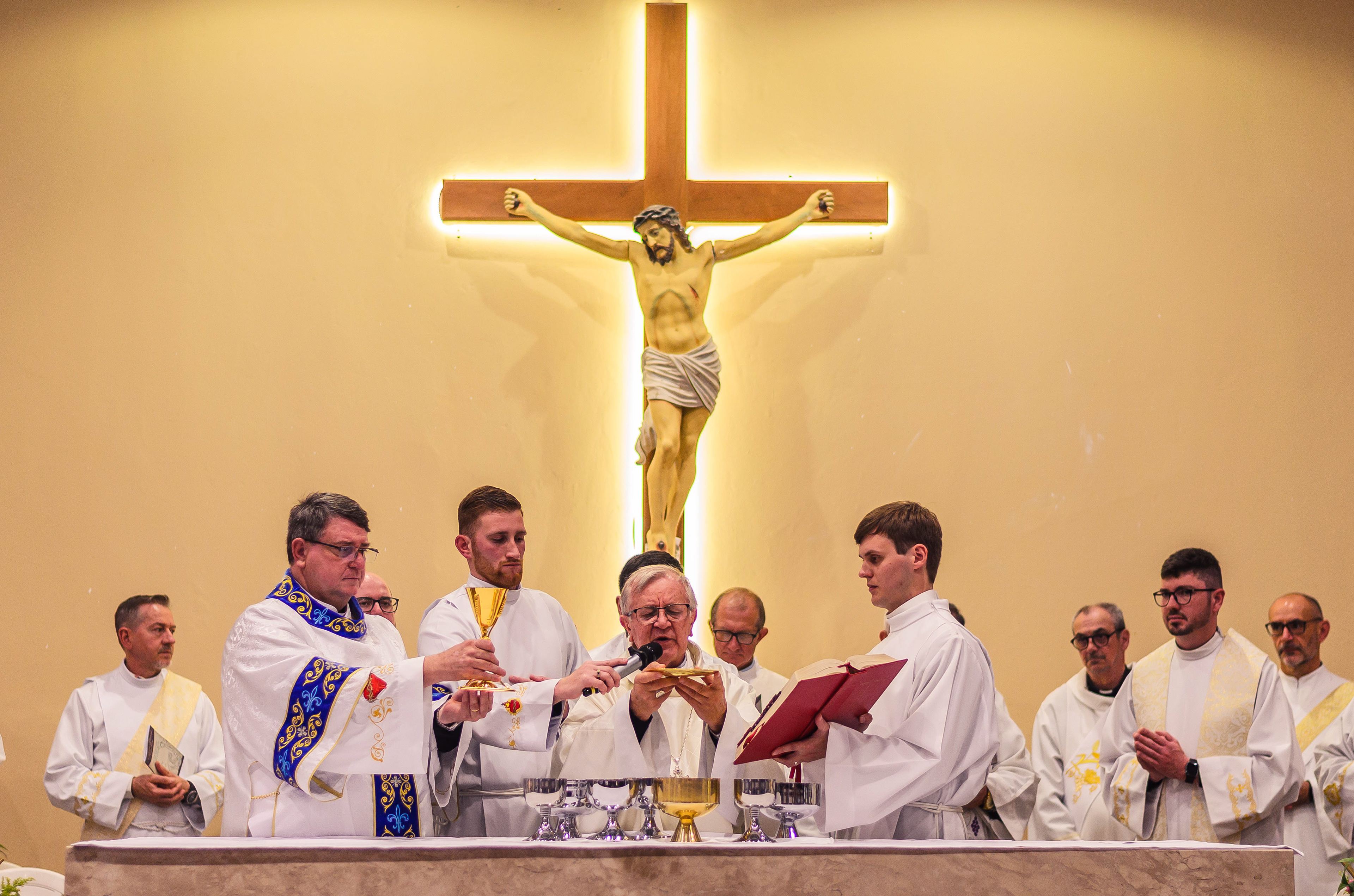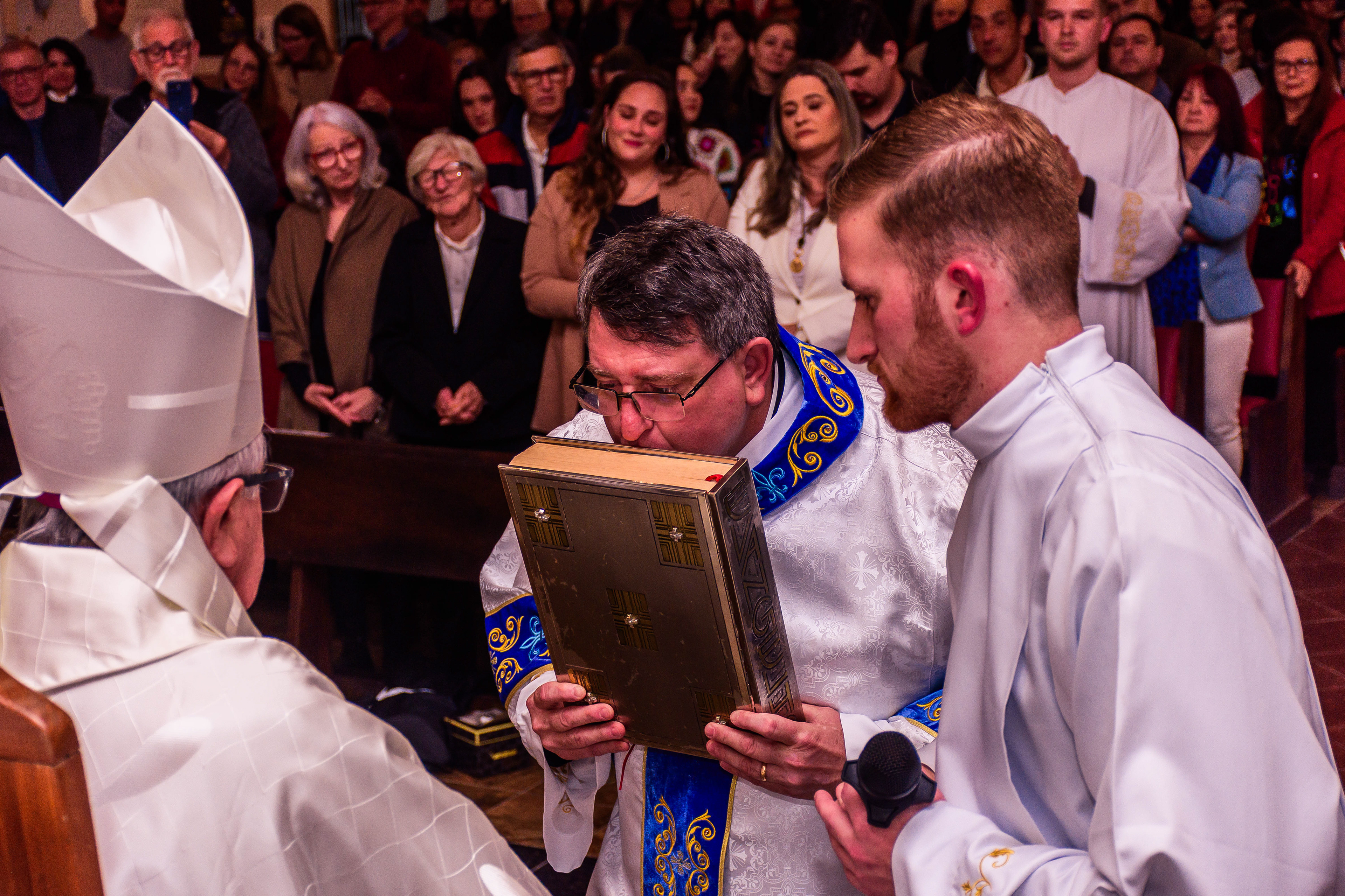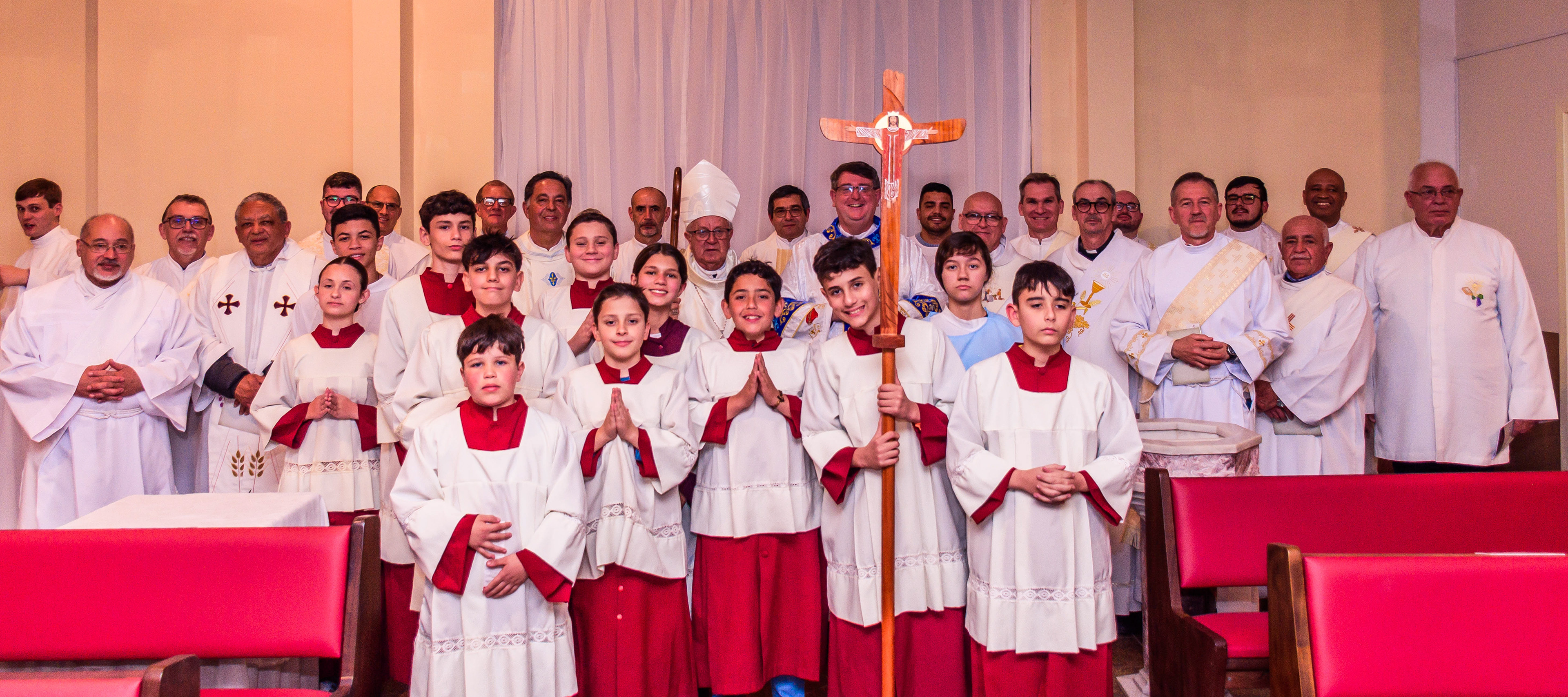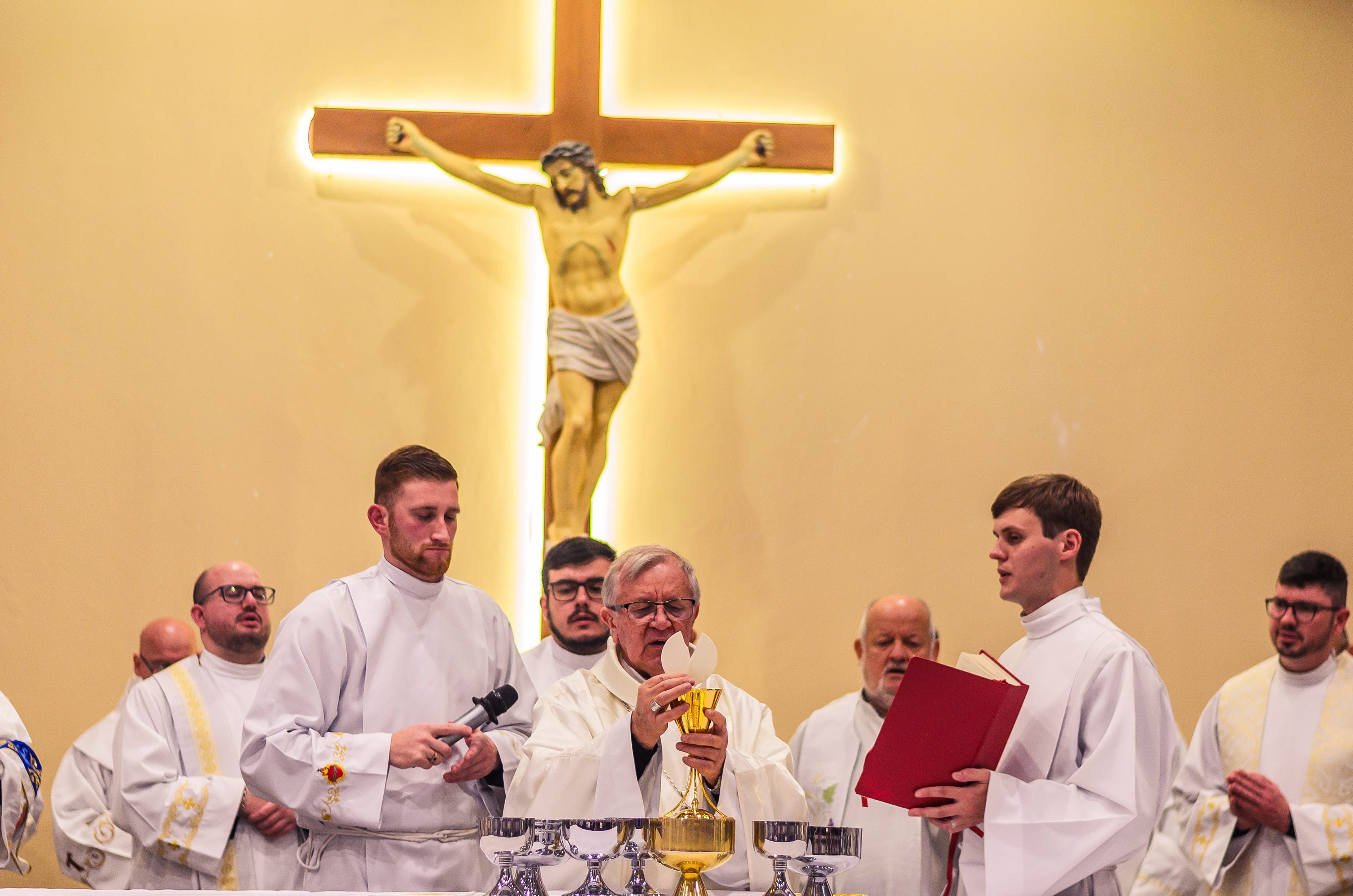Neste dia santo, marcado pela graça e pelo mistério do chamado, cada instante revela a entrega generosa de um coração disposto a servir. As imagens não registram apenas gestos e olhares, mas o “sim” pronunciado diante de Deus e da Igreja, selado pela fé, pela obediência e pelo amor ao próximo. Que este álbum seja memória viva da Ordenação Diaconal de Rafael Petry, sinal da ação do Espírito Santo, da vocação acolhida com humildade e da missão que, a partir deste dia, se torna serviço e doação para a vida do povo de Deus.
