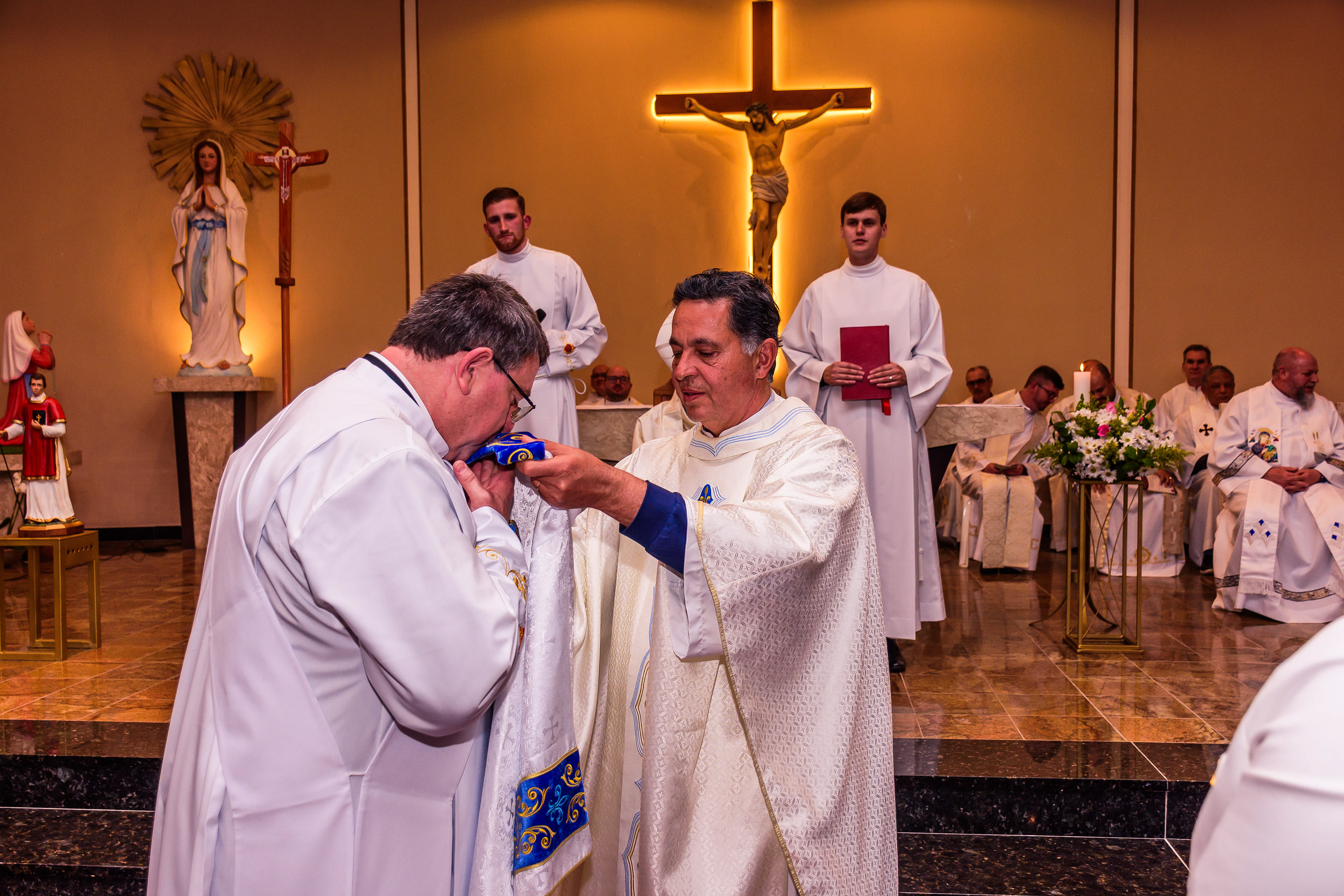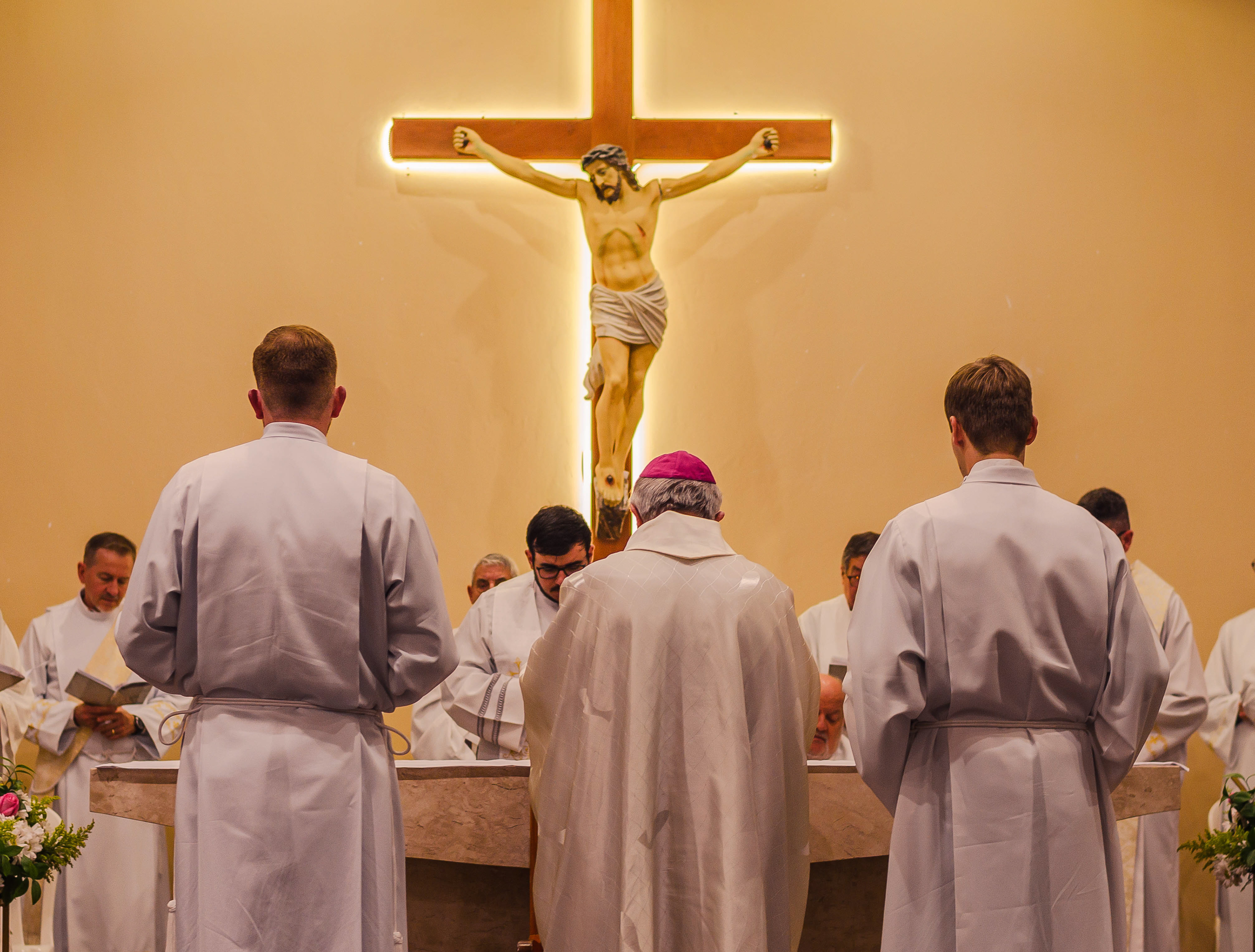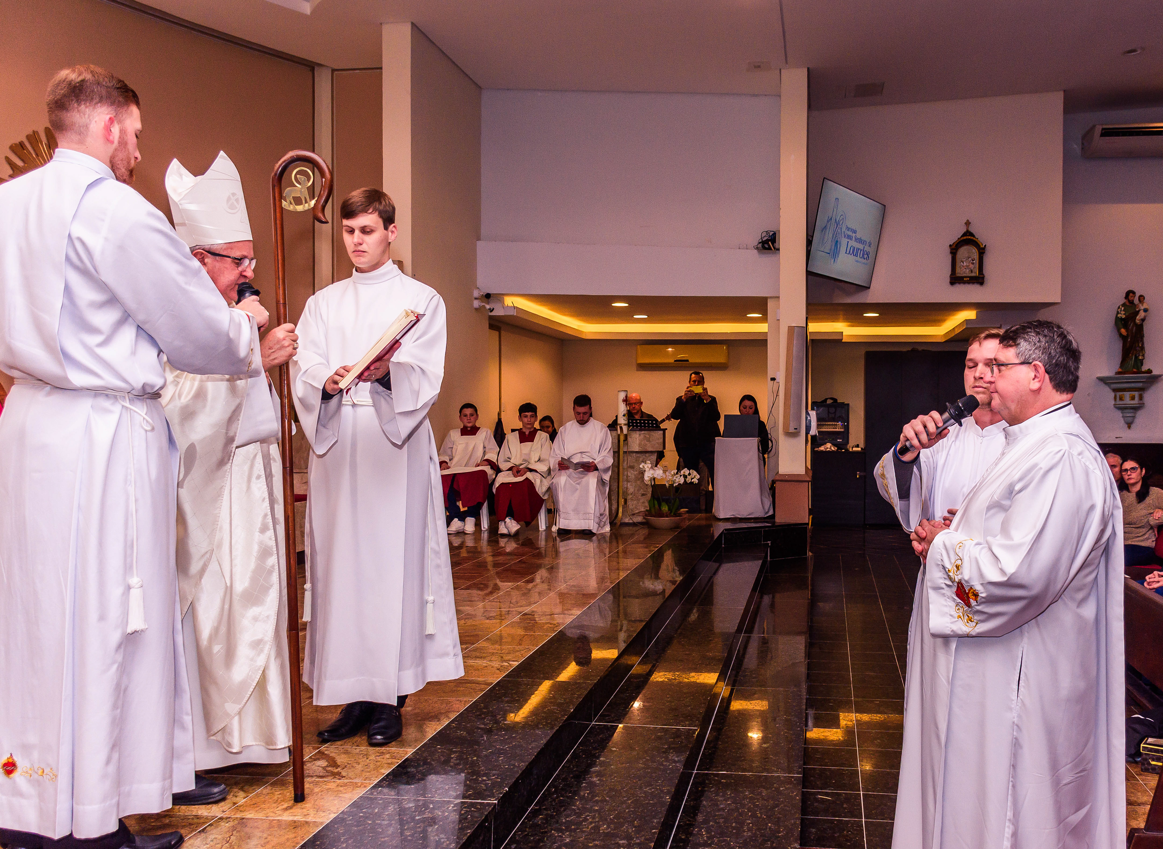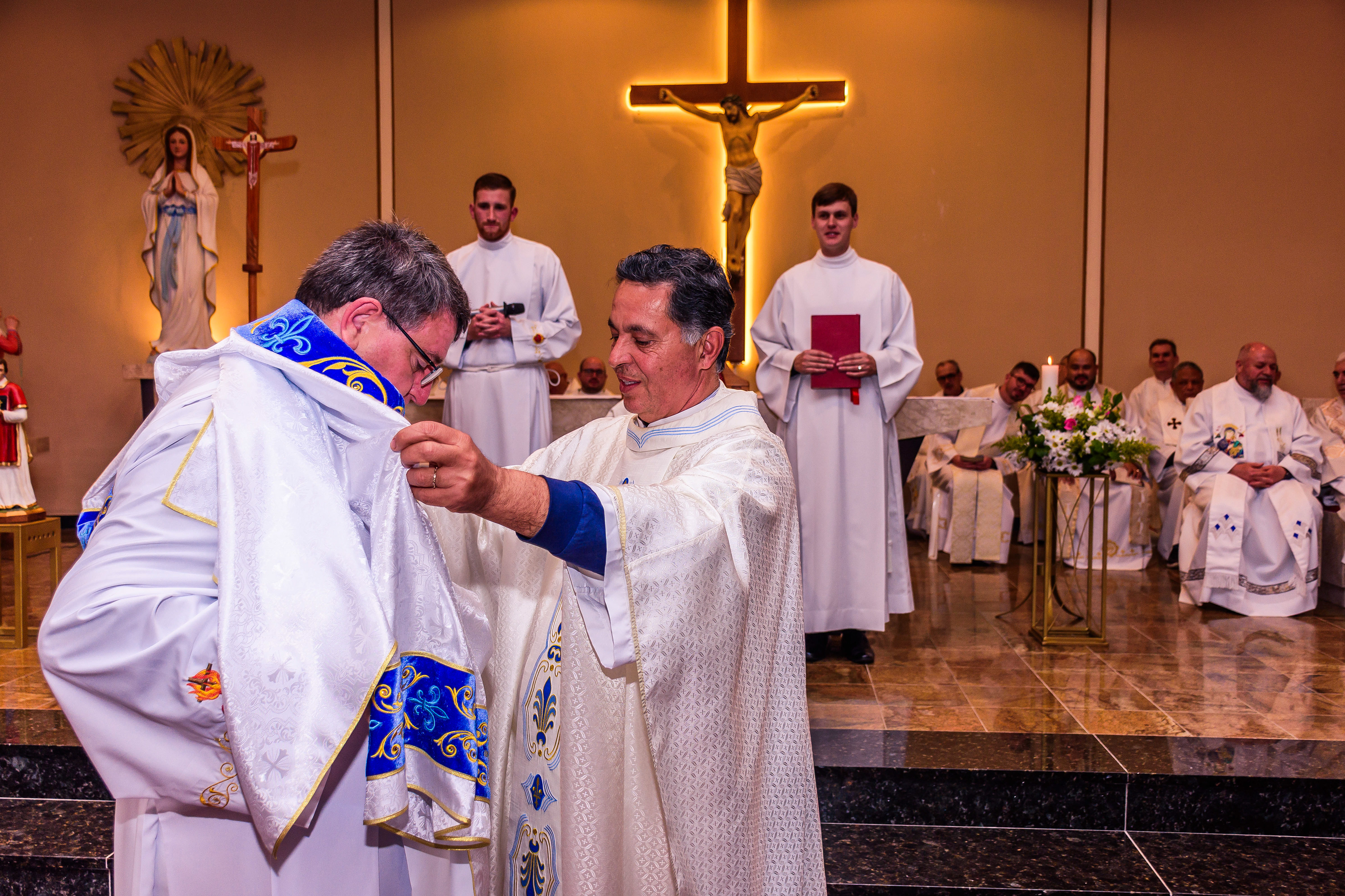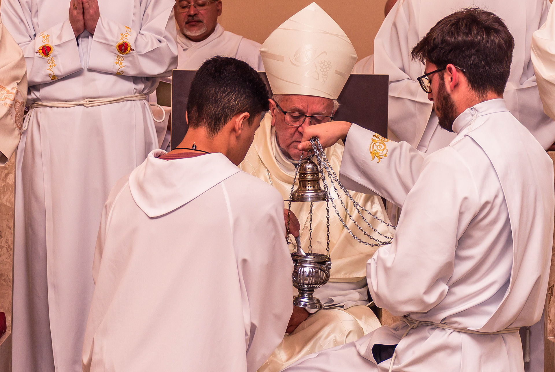Neste dia santo, marcado pela graça e pelo mistério do chamado, cada instante revela a entrega generosa de um coração disposto a servir. As imagens não registram apenas gestos e olhares, mas o “sim” pronunciado diante de Deus e da Igreja, selado pela fé, pela obediência e pelo amor ao próximo. Que este álbum seja memória viva da Ordenação Diaconal de Rafael Petry, sinal da ação do Espírito Santo, da vocação acolhida com humildade e da missão que, a partir deste dia, se torna serviço e doação para a vida do povo de Deus.