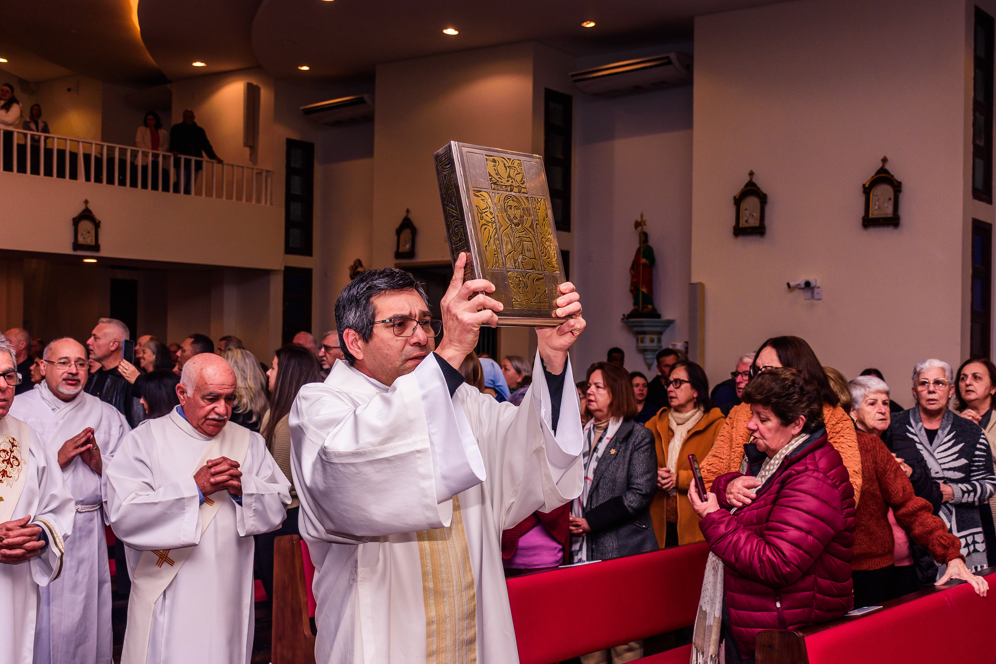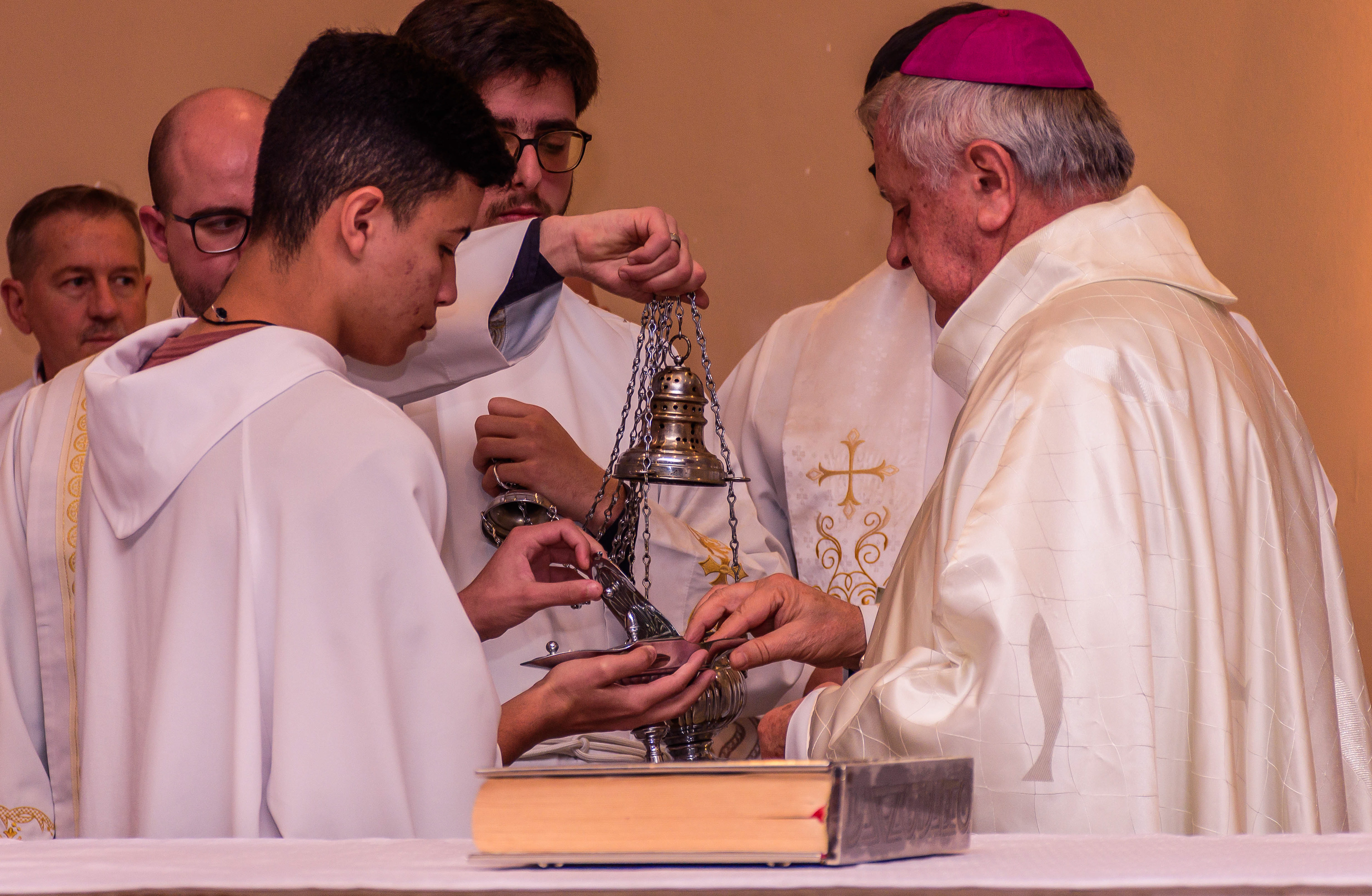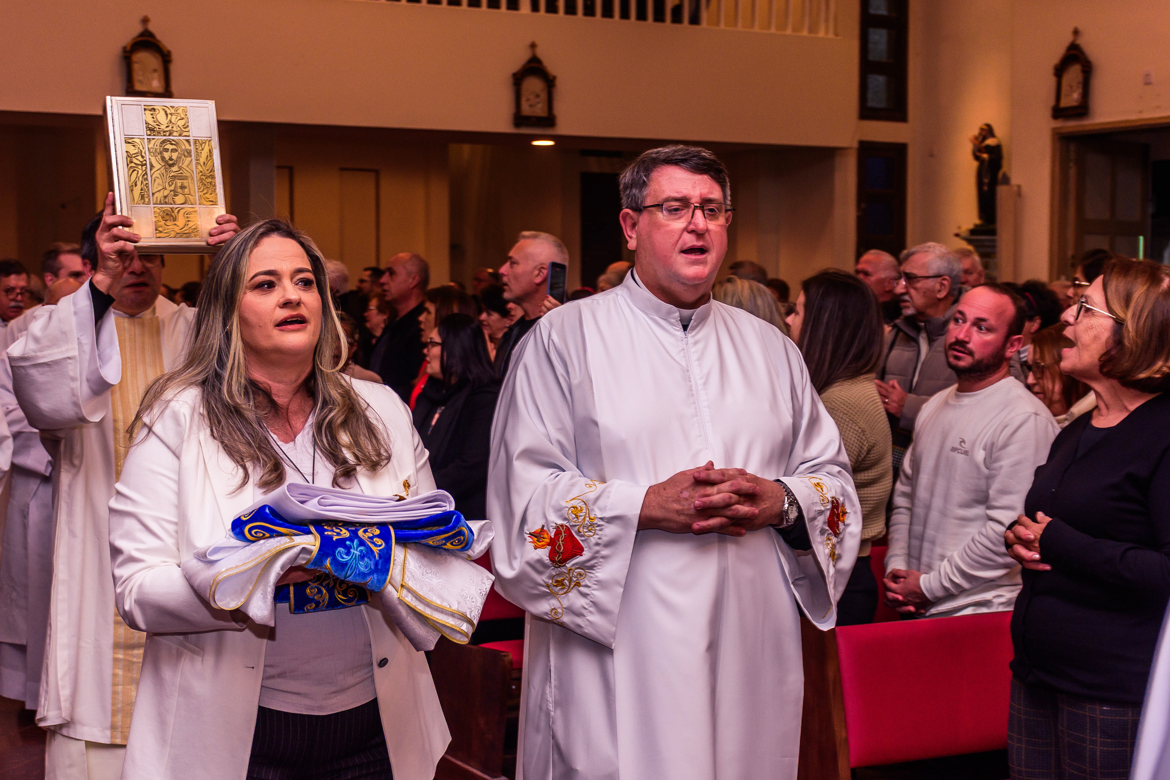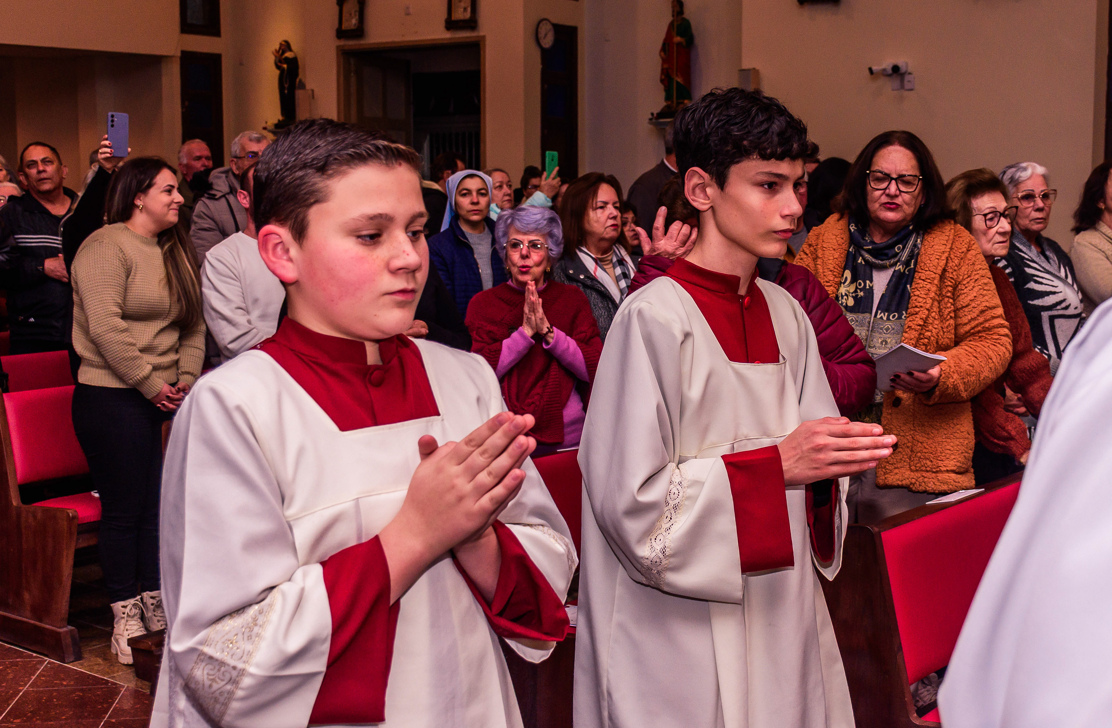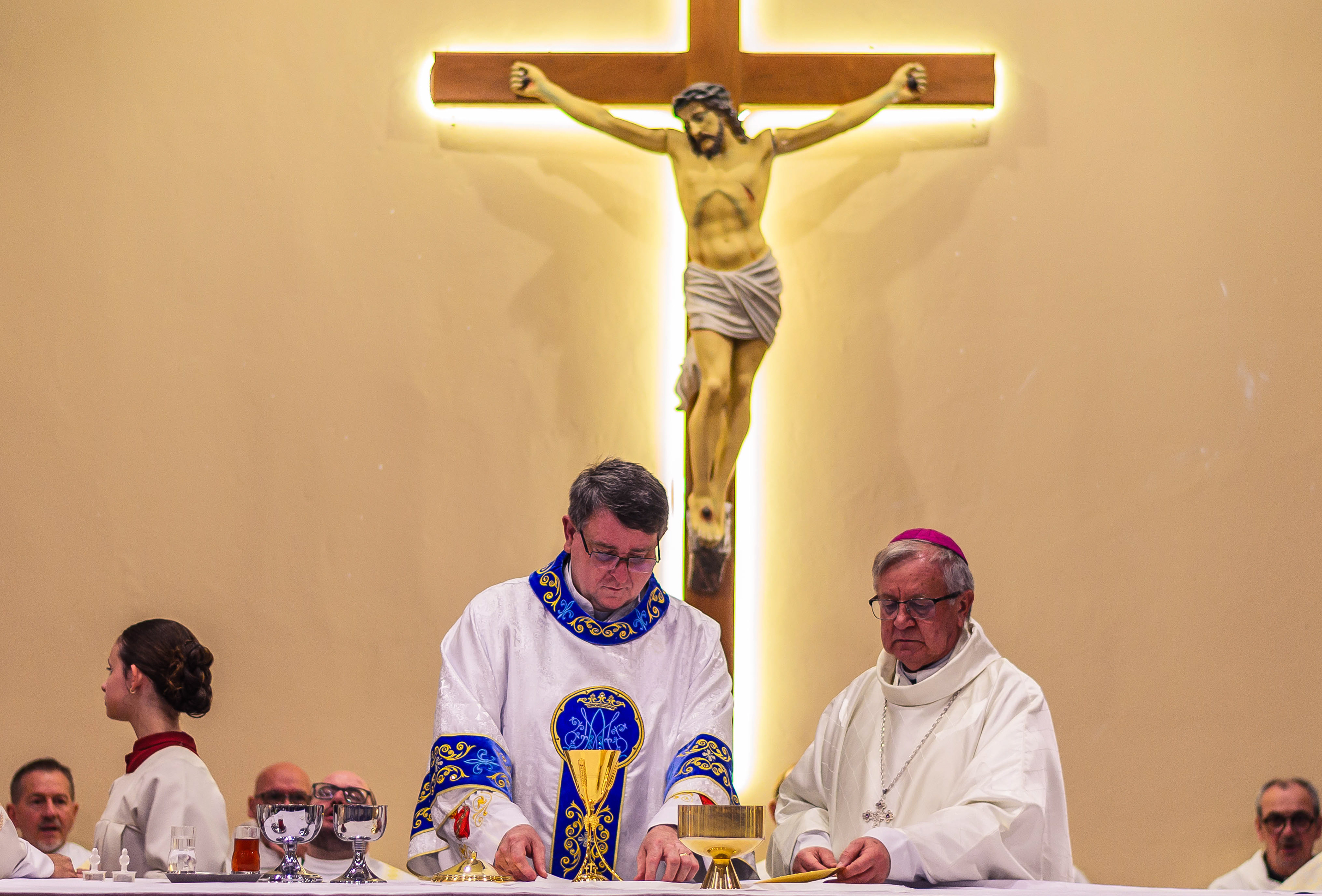 Neste dia santo, marcado pela graça e pelo mistério do chamado, cada instante revela a entrega generosa de um coração disposto a servir. As imagens não registram apenas gestos e olhares, mas o “sim” pronunciado diante de Deus e da Igreja, selado pela fé, pela obediência e pelo amor ao próximo. Que este álbum seja memória viva da Ordenação Diaconal de Rafael Petry, sinal da ação do Espírito Santo, da vocação acolhida com humildade e da missão que, a partir deste dia, se torna serviço e doação para a vida do povo de Deus.